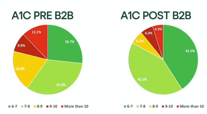 Inoltre, l’aspetto più impressionante è che i partecipanti hanno riportato i seguenti cambiamenti nell’A1C e negli eventi di iperglicemia dopo la formazione B2B: